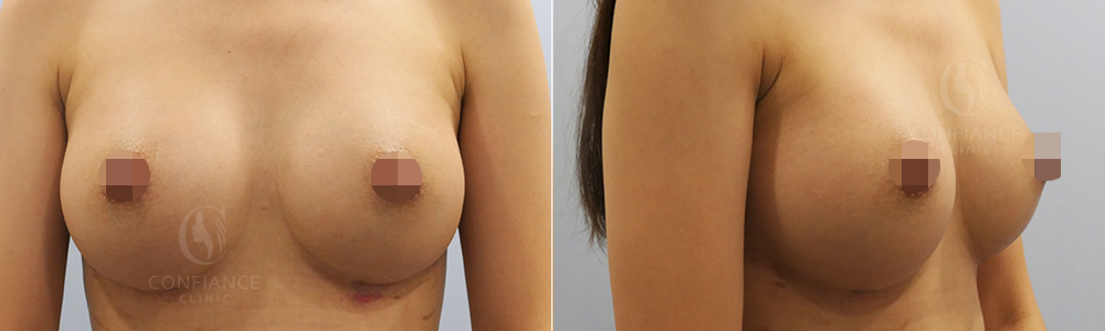 - 乳房下緣切口 視野佳、對稱性高,瘢痕隱於胸下皺襞。